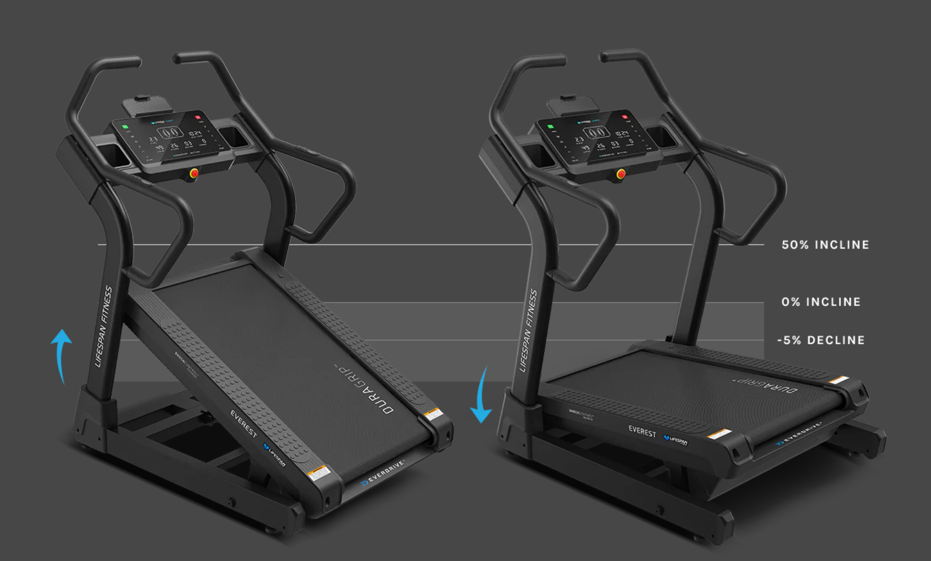 Get the ultimate calorie burn and intensify your workout by cranking up the automatic incline to a whopping 50% true incline at the push of a button. It doesn't take long until you'll feel the burn on the Everest. Simulate down-hill environments and target a different muscle group with a 5% decline.