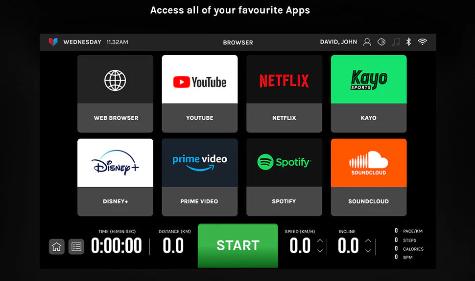 This vibrant, high-definition touchscreen provides crystal-clear visuals with responsive touch controls, making it easy to navigate through workout options. Track your progress, explore virtual trails or stream your favourite media on the intuitive display with a variety of built-in apps and programs.