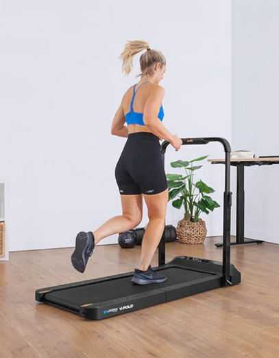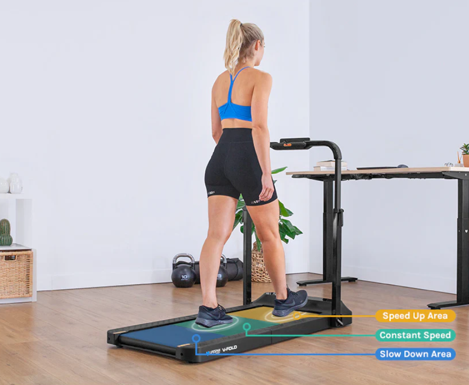 The V-FOLD walking platform boasts a high-density DuraGrip running belt used to ensure its excellent quality. EVA cushioning layer provides extra comfort with, while the walking belt is wear-resistant with anti-slip technology.