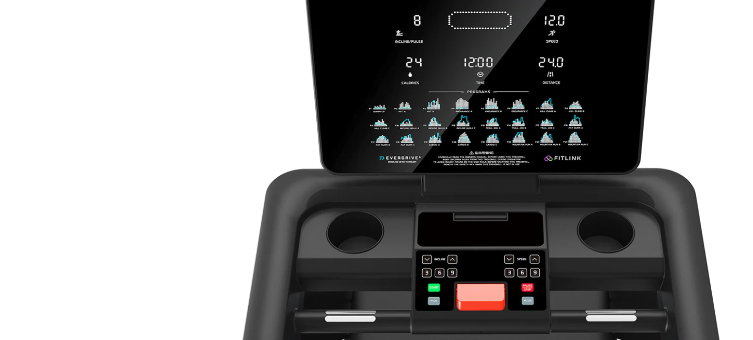Stay in touch with your workout data with a simple, but easy to read backlit LCD display. Shows speed, time, distance, calories, incline level, pulse and a 400m running track.