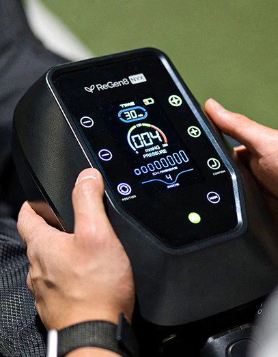 Included are the Regen8 Nyx host machine, an adapter for added flexibility, two inflatable connecting pipes and two leg cuffs for targeted compression therapy. We also provide a power adapter for hassle-free charging, a convenient backpack for easy transportation, a manual and an accessory bag to keep your essentials organised.