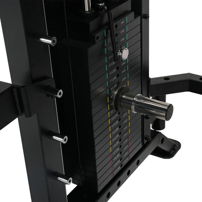Easily attach the Leg Press Plate to the Smith machine bar for a controlled, stable leg press experience. This feature allows you to target your quads, glutes and hamstrings with precision, providing the benefits of a traditional leg press machine without the need for additional equipment.