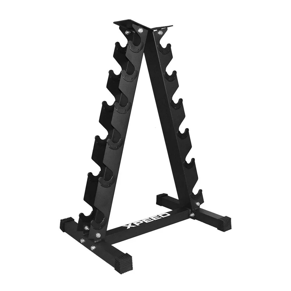 Elevate your home gym organisation with the Xpeed A-Frame Dumbbell Rack, designed to hold 6 pairs of dumbbells. Crafted with durability and space efficiency in mind, this sleek and sturdy rack ensures your workout area remains tidy and accessible.
