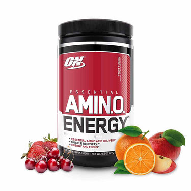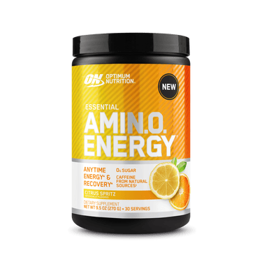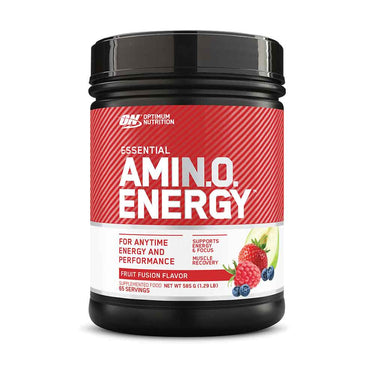 Optimum Nutrition Amino Energy offers a unique combination of Branch Chain Amino Acids and Caffeine. Mix up Essential Amino Energy anytime you want a refreshing fruit flavoured boost of energy and alertness. You can determine what’s appropriate for any situation, adding a 2-scoop serving to water for an afternoon pick-me-up or increasing the amino acid matrix to 10 grams with a 4-scoop pre-workout drink that delivers 200 mg of caffeine from green coffee and green tea extracts.