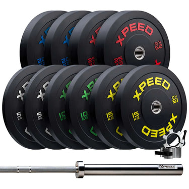 Xpeed 150kg Bumper Plate Pack + 20kg Barbell