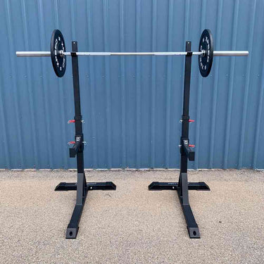 The FFITTECH Squat Stands can handle everything from squats, deadlifts and bench press variations. Due to its adjustable and free standing nature this sturdy piece of kit can fit a variety of barbell types and sizes, whilst the frame is easy to manoeuvre at the end of your workouts.