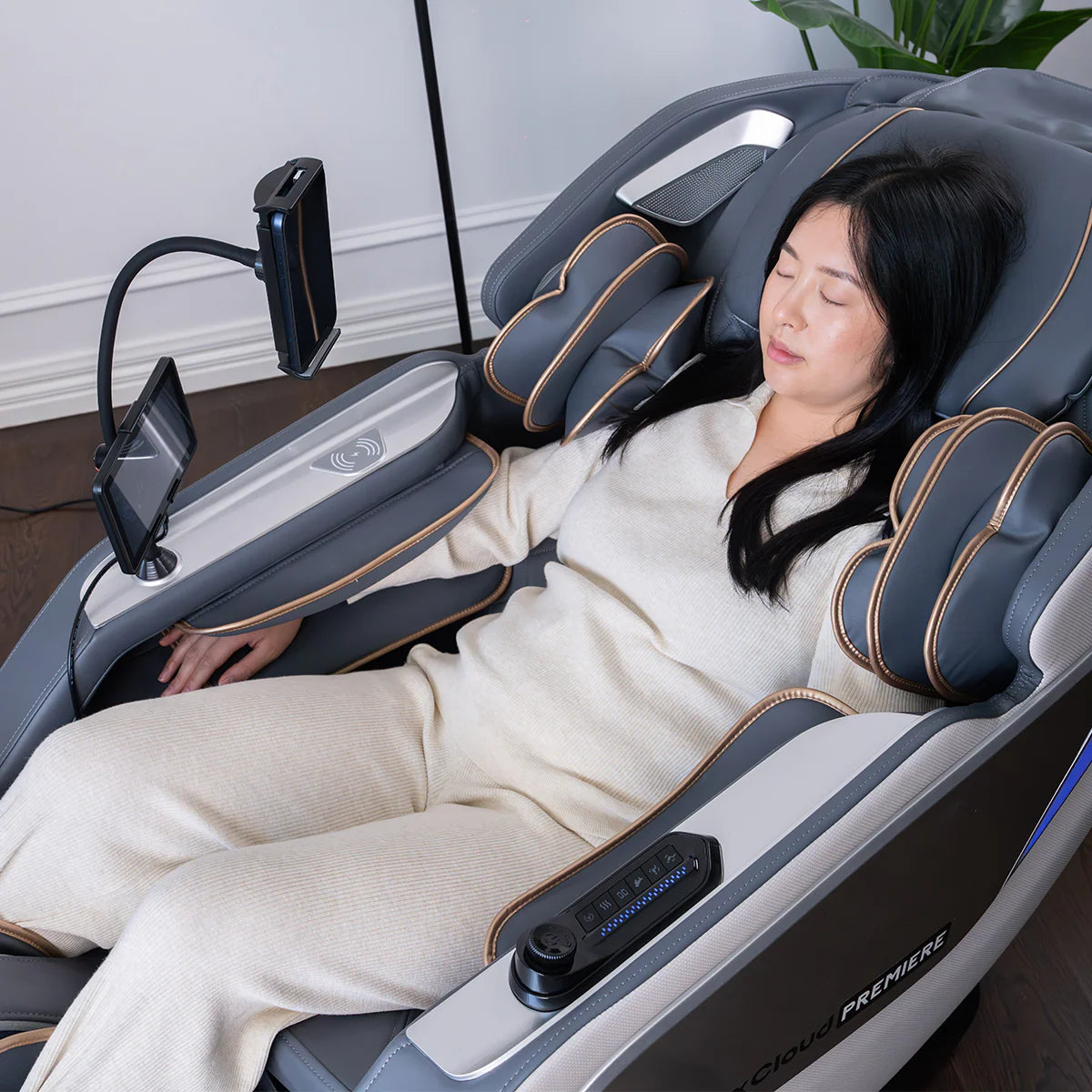 The Regen8 LuxCloud Premiere achieves a comprehensive, full-body massage with the latest in home wellness tech, providing a rejuvenating and indulgent experience.