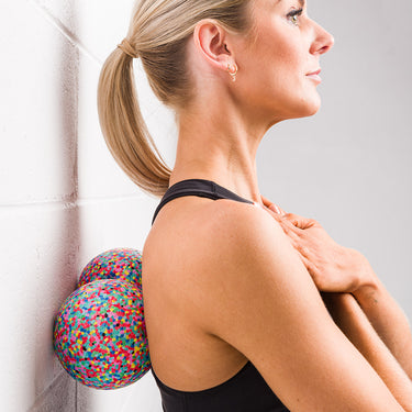 The Xpeed 12cm Medium Density Duo Massage Ball is designed for self myofascial release, trigger point treatment and mobility work on areas of the body with parallel muscle lines. The lumbar spine and thoracic spine are great examples of this. The twin massage ball is also effective for the lower leg, the upper thighs and hips. It™s the perfect addition to the training tool kit for those hard to reach muscles. Ideal for people new to foam rolling and taller people who may have wider shoulders and wider lower back muscles.
