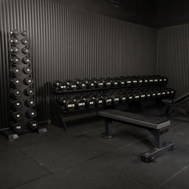 Paired with this dumbbell set is a robust, dual-part Premium Xpeed Dumbbell Rack. This set comprises a vertical tree to house the 1kg to 10kg pairs and a horizontal rack for the 12.5kg and above. Both elements of the rack are designed for maximum stability and ease of access, ensuring your dumbbells are securely stored and easily accessible. Made with high-quality steel and finished with a sleek matte black powder coat, this rack not only provides functionality but also adds a professional look to your training space.