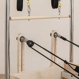 Unlike a traditional bed reformer, which is limited to horizontal movements, the Cadillac offers multi-dimensional movement through the trapeze section, allowing you to work the full spectrum of muscles across the body. This makes it ideal for both advanced Pilates techniques and rehabilitation exercises. With access to wide range of exercises, you’ll enjoy a more advanced, dynamic fitness experience that better caters to your individual needs.