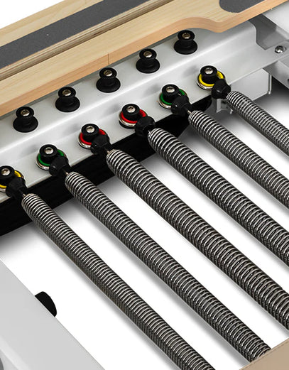 Empower your workouts with the Contour's 6 spring system. With 2 adjustable positions, this high-quality mechanism features 2 red springs for hard resistance, 2 green spring for medium, and 2 yellow spring for light, allowing you to tailor your exercises to your desired intensity level.