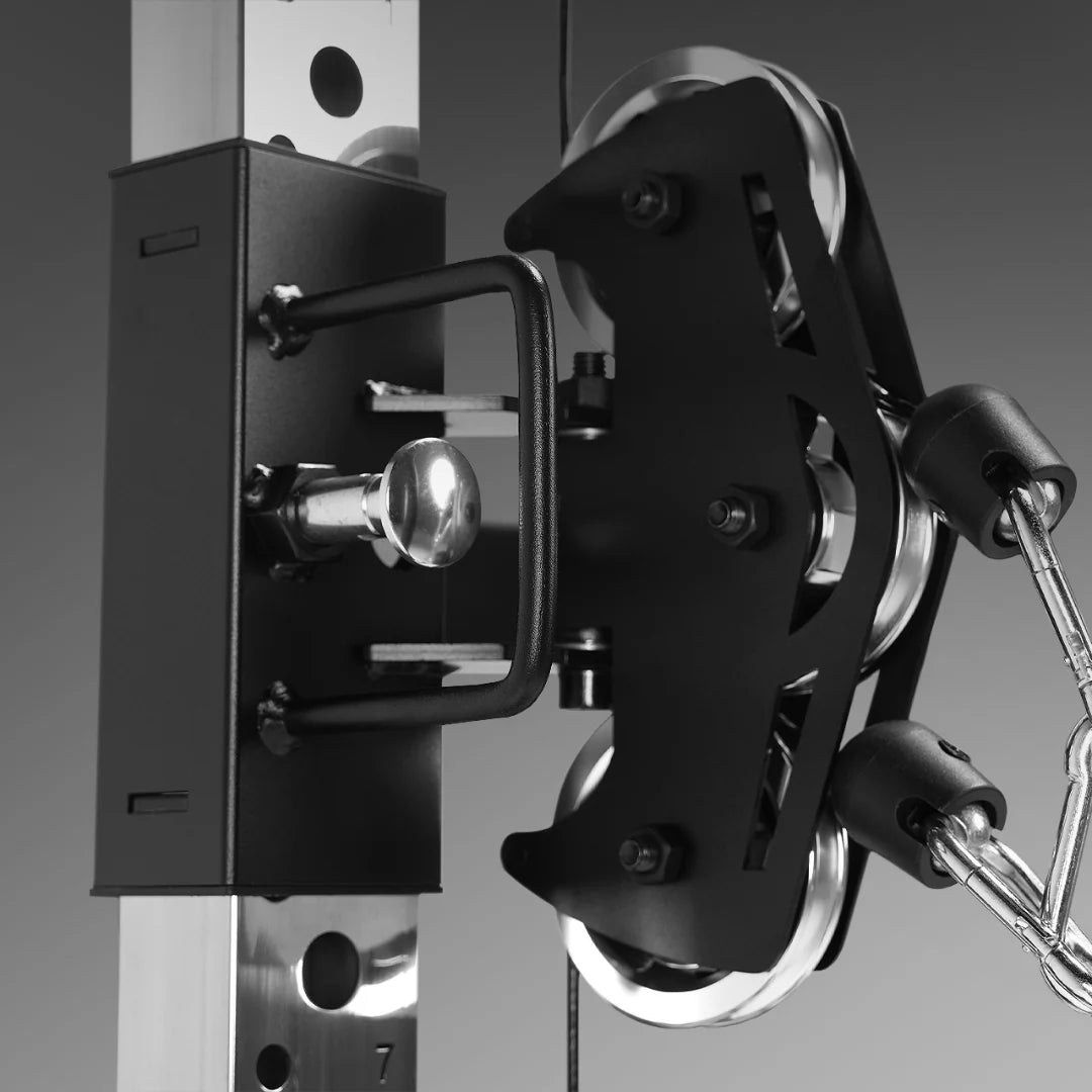 The dual adjustable cable pulley system on the X6 operates with a 1:1 & 2:1 ratio, allowing for controlled, smooth resistance that's ideal for both explosive movements and precise, high-rep exercises. This versatile system makes it perfect for functional training, strength building and rehabilitation, providing the resistance range needed for everything from power-based workouts to fine-tuned muscle engagement.