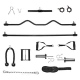 Expanded Cable Exercises: Includes a lat pulldown bar and handle attachments for versatile upper body workouts, including lat pulldowns and low pulley rows.