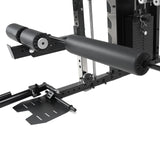 The roller attachment on the X6 has a dual role, it first helps secure your knees during lat pulldowns, ensuring stability and proper form for an effective upper body workout. Additionally, by flipping the safety arms and positioning them at the lowest point on the rack, they serve as a reliable foot anchor for performing Nordic hamstring curls, making them a versatile addition to your workout routine.