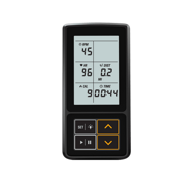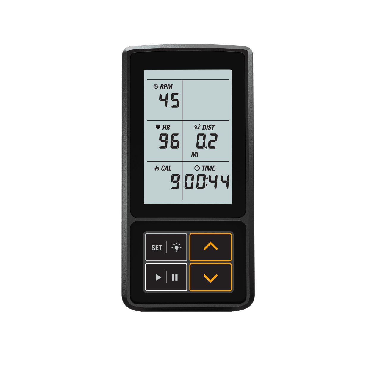 - Console-RPM, Time, Distance, Heart Rate, Calories