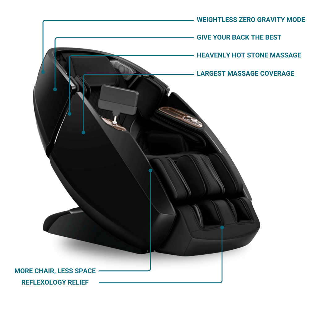 Reach new levels of relaxation by turning on the Hot Stone Massage Treatment in the Therapeutic Dual-Pro® to soothe muscle tension and encourage deeper tissue penetration. Using the latest Graphene technology that heats up to 40 degrees, enjoy an amazing massage experience offering heat therapy in the back, waist and upper leg areas.