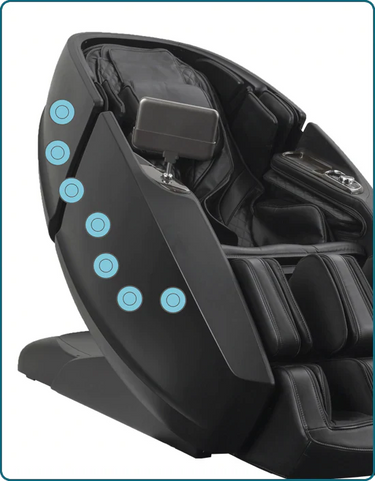 The Therapeutic Dual-Pro® features advanced Flexi-Track™ Rail Technology, a 135 cm SL-shaped rail installed within the chair that actually flexs and adjusts during treatment to expertly mould to the shape of your spine. It is the longest rail offered on the market and enables the dual-action massage hands to reach more of your lower back area, including the hips, tailbone and the top of your glutes. This extends beyond the typical treatment area of most massage chairs, meaning optimal pain relief is always within your grasp.