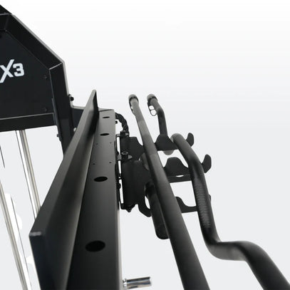 The integrated barbell storage on the X3 keeps your workout space organised and clutter-free. By conveniently storing your barbell within arm's reach, you can quickly transition between exercises while maintaining a clean and efficient training area, perfect for both home gyms and commercial setups.