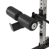 The roller attachment on the X3 has a dual role, it first helps secure your knees during lat pulldowns, ensuring stability and proper form for an effective upper body workout. Additionally, by flipping the safety arms and positioning them at the lowest point on the rack, they serve as a reliable foot anchor for performing Nordic hamstring curls, making them a versatile addition to your workout routine.