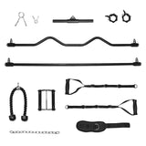 Expanded Cable Exercises: Includes a lat pulldown bar and handle attachments for versatile upper body workouts, including lat pulldowns and low pulley rows.